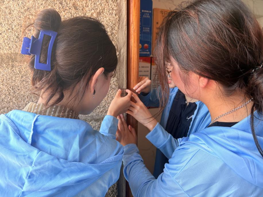 與北港村的熱鬧不同,光裕村的石厝仍停留在“原始狀態(tài)”:花崗巖墻身爬滿青苔,屋頂瓦片多有破損。實踐隊逐戶走訪發(fā)現(xiàn),這里的石厝保留著更原始的樣子,普遍面臨三大難題:墻體裂縫、屋頂漏雨等保護問題突出;缺乏改造資金與專業(yè)技術(shù);無明確產(chǎn)業(yè)規(guī)劃,石厝價值難以釋放。 隊員們記錄石厝原始風(fēng)貌,詳細(xì)標(biāo)注建筑病害,為后續(xù)對比分析積累一手資料。