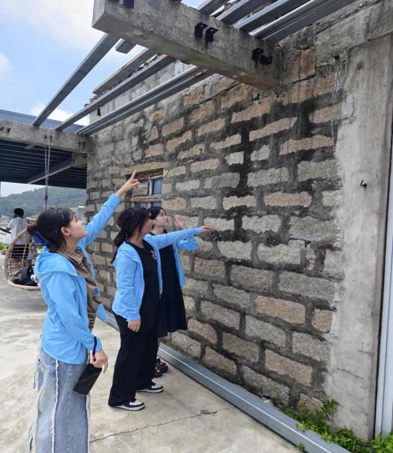 作為開發(fā)成熟的文旅樣本,北港村的石厝早已褪去原始漁村的單一功能。實踐隊以建筑專業(yè)視角深度調(diào)研:用卷尺測量花崗巖墻體厚度、記錄屋頂坡度與防風(fēng)石塊排布,將數(shù)據(jù)錄入《北港村石厝建筑檔案》,系統(tǒng)梳理“雙軌墻石結(jié)構(gòu)”“海洋紋樣飾建筑”等獨特智慧;走訪村民與民宿,記錄“外古內(nèi)新”改造模式——保留石墻原貌的同時,引入玻璃窗與智能家居,既守住文化根脈又提升居住體驗。 產(chǎn)業(yè)調(diào)研更顯成效:石厝民宿客流穩(wěn)定,特色海鮮小吃帶動村民增收明顯,“住石厝、品海味、悟文化”的文旅鏈條已形成閉環(huán)。