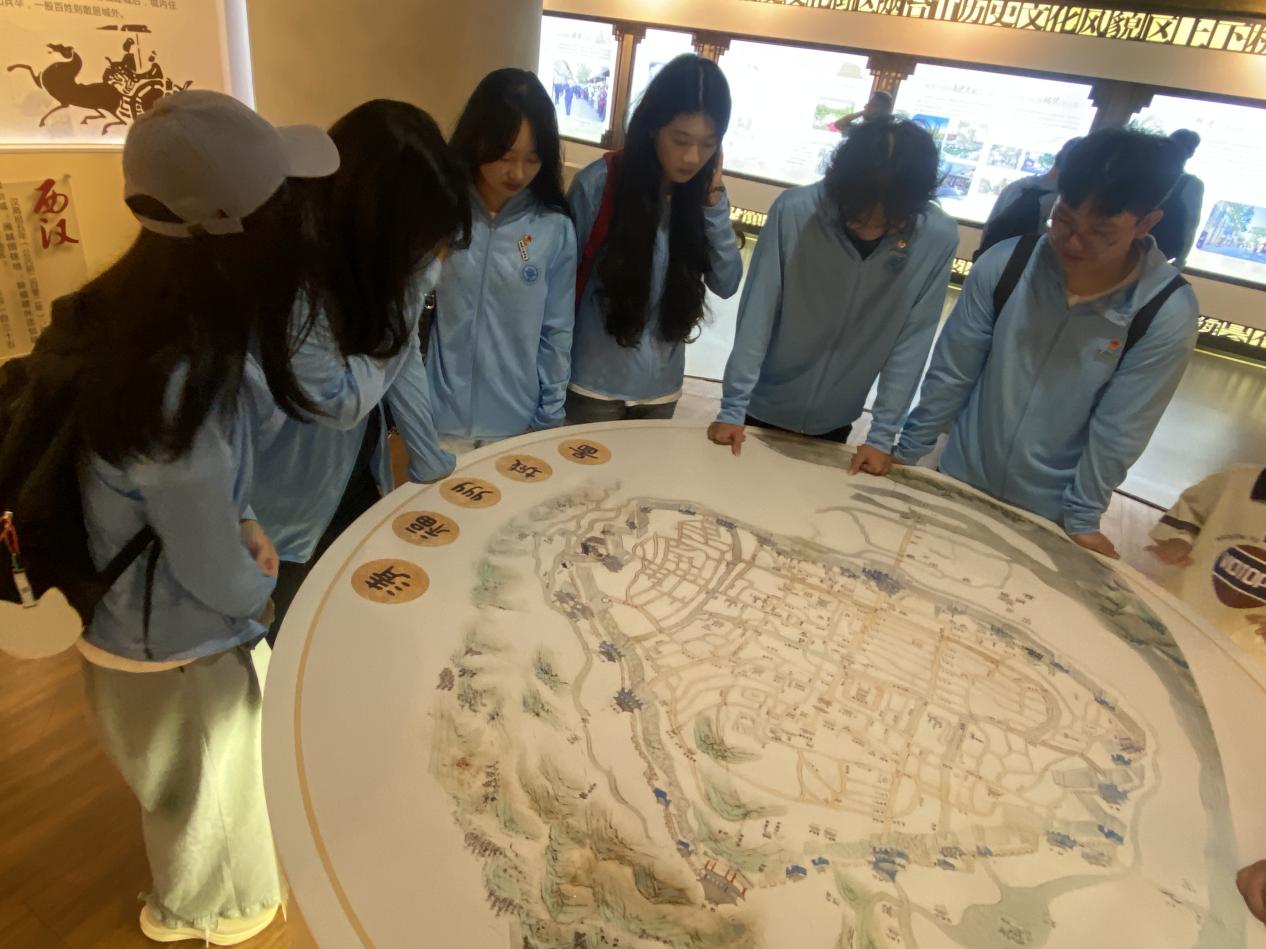圖7:隊(duì)員們觀看福州清朝時(shí)期城邑圖