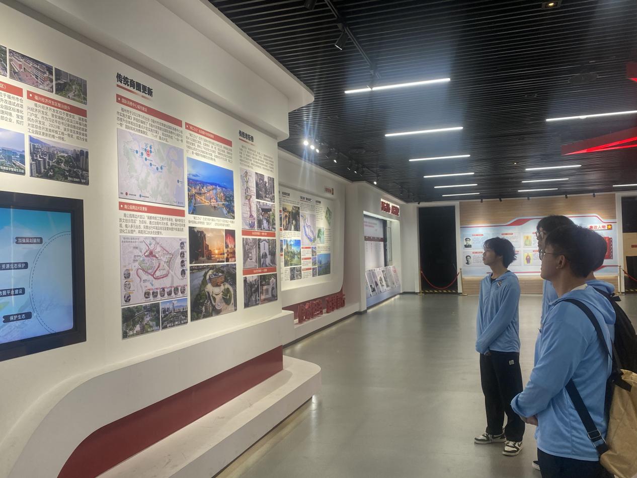 通過館內(nèi)未來影院和各類VR互動體驗(yàn)項(xiàng)目,實(shí)踐團(tuán)對福州城市規(guī)劃的科學(xué)性和前瞻性有了更直觀的認(rèn)識,對“數(shù)字中國”“生態(tài)文明”等國家戰(zhàn)略在地方落地生根有了更深刻的理解。隊(duì)員們在與自己專業(yè)相關(guān)的展區(qū)前駐足良久,課堂所學(xué)的理論知識在此刻化為生動的實(shí)踐體驗(yàn)。那些曾經(jīng)停留在課本上的城市規(guī)劃理念、交通網(wǎng)絡(luò)布局原則,在這里得到了具體地展現(xiàn)和應(yīng)用。不僅加深了隊(duì)員對專業(yè)知識的理解,更激發(fā)了他們投身祖國建設(shè)的熱情和信心。