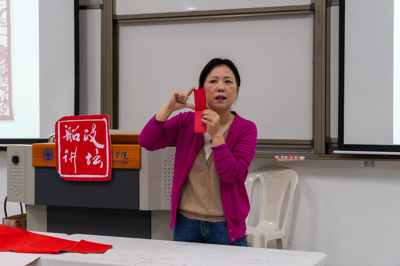 此次剪紙主題講座,既是對民間精湛技藝的生動展演,更是一堂浸潤中華優(yōu)秀傳統(tǒng)文化的特色課堂。學院將繼續(xù)推動中國傳統(tǒng)文化美學活動進校園,將非遺的種子播撒在年輕學子的心田,讓古老的傳統(tǒng)藝術在校園里煥發(fā)出新的生機與活力,增強學生的文化自信與民族自豪感。