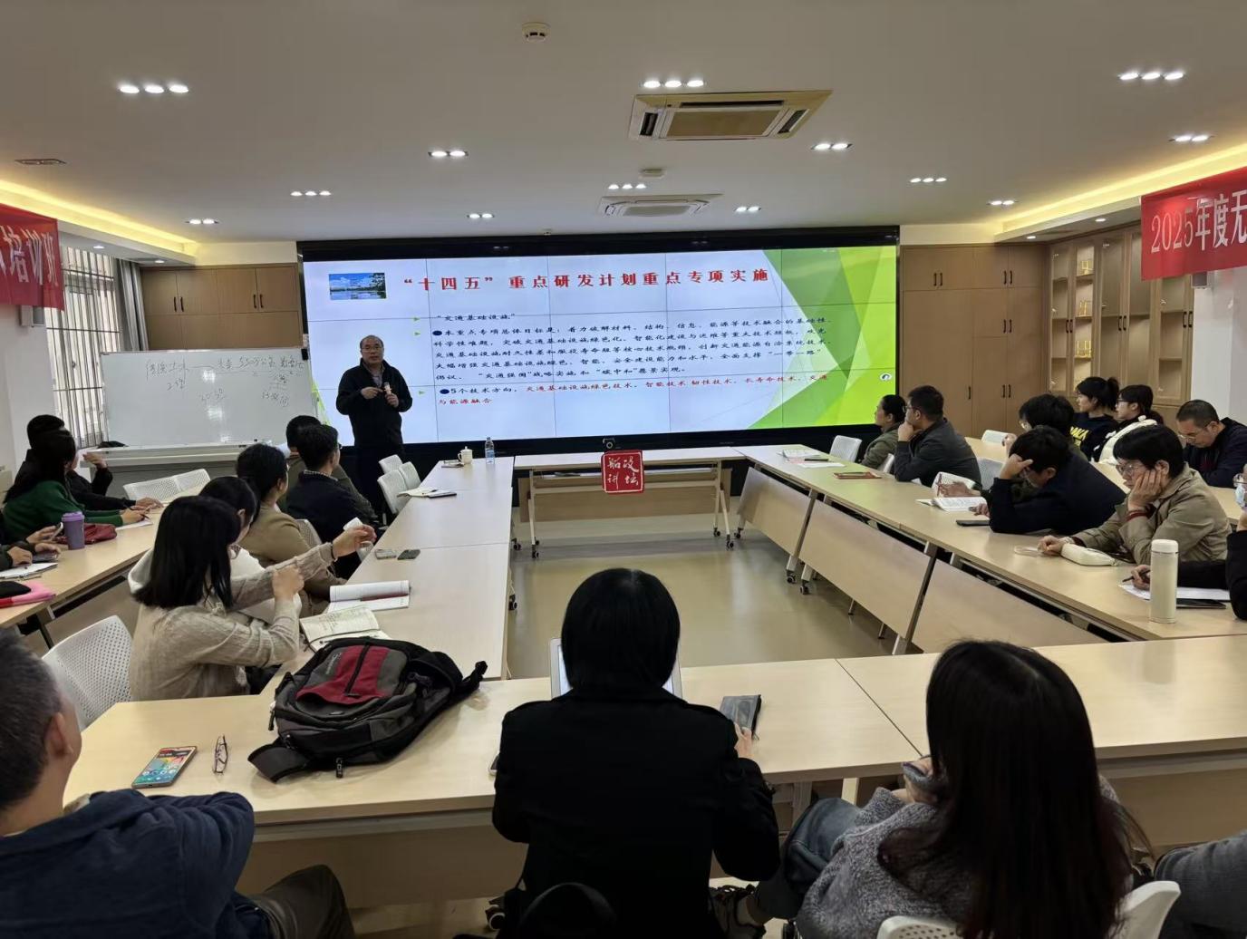 這場講座不僅是交通基建智能化創(chuàng)新成果與發(fā)展經驗的集中展示,更是一堂厚植家國情懷、激發(fā)責任擔當?shù)乃颊n堂。胡教授深入解讀了“建養(yǎng)并重”新階段的行業(yè)使命,從“十四五”“十五五”重點研發(fā)計劃的政策布局,到長春無線充電公路、蘇州“三合一”電子公路等標桿項目的技術突破,讓學院教師們既領略到中國交通基建的硬核實力與全球視野,更深刻認識到交通作為“興國之要、強國之基”的戰(zhàn)略意義。