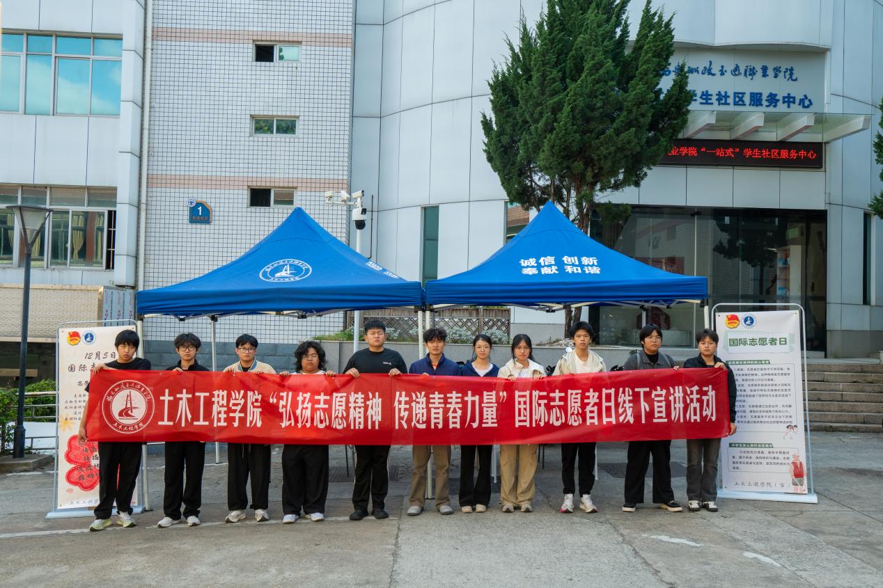 為響應國家志愿服務體系建設號召,弘揚“奉獻、友愛、互助、進步”的志愿精神,彰顯新時代青年的責任擔當,引導同學們積極投身于志愿服務當中。2025年12月5日在第四十屆“ 國際志愿者日 ”來臨之際,土木工程學院于在福航園“一站式”學生社區(qū)開展“弘揚志愿精神,傳遞青春力量”主題宣講活動。