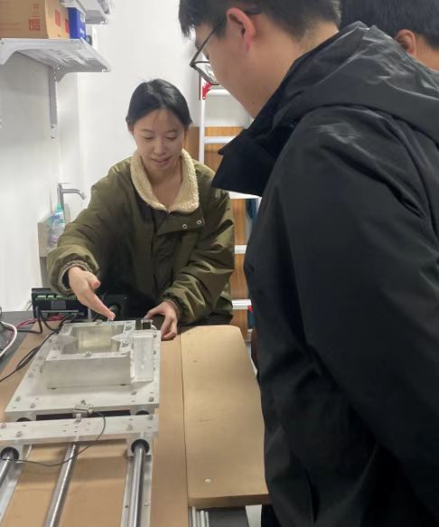 講解結(jié)束后,江景杉帶領(lǐng)大學(xué)生科研項目團(tuán)隊成員嚴(yán)格按照規(guī)范流程進(jìn)行實操,完成土樣制備、儀器校驗、填土壓實、拉伸觀測及數(shù)據(jù)記錄、樣品留存與設(shè)備清理等系列實驗操作。