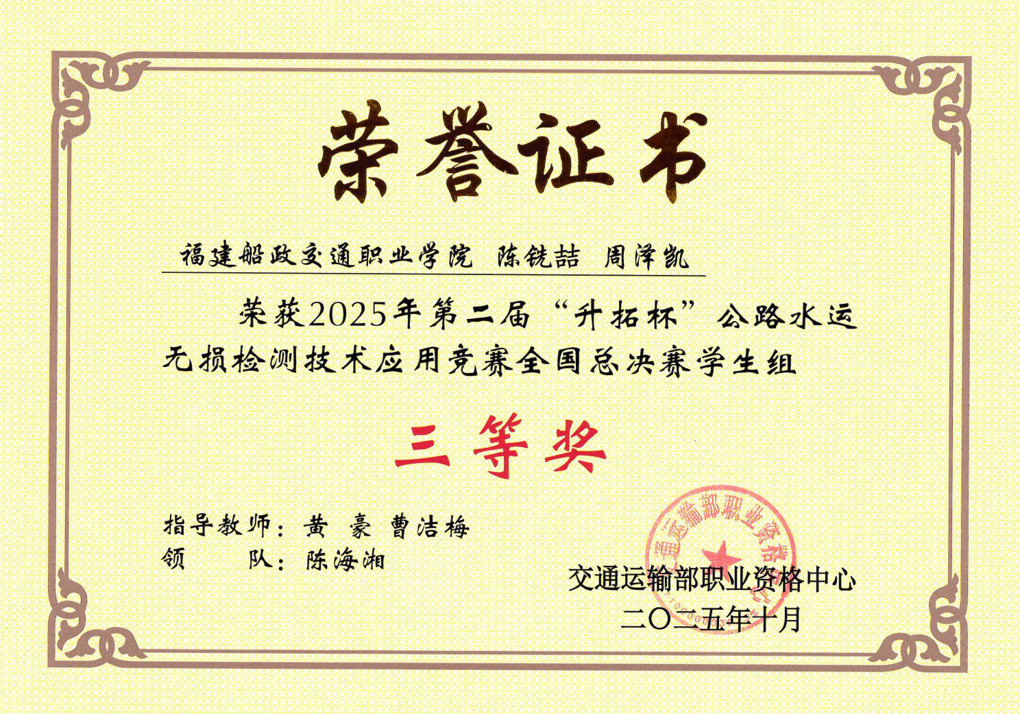 師資力量強.博士教授領(lǐng)銜:國家級教師教學(xué)創(chuàng)新團隊,專任教師30余人,其中教授7人,具有博士學(xué)位7人,教師團隊不僅是教學(xué)能手,更是行業(yè)專家。設(shè)有交通部自動化作業(yè)技術(shù)交通運輸行業(yè)研發(fā)中心,交通部近海公路建設(shè)與養(yǎng)護新材料技術(shù)應(yīng)用交通運輸行業(yè)研發(fā)中心,交通土建智能與綠色建造應(yīng)用技術(shù)國家級協(xié)同創(chuàng)新中心,韌性交通基礎(chǔ)設(shè)施數(shù)字化應(yīng)用技術(shù)工程中心等高端科研服務(wù)平臺,充分發(fā)揮職業(yè)教育的社會服務(wù)功能。專任教師“亦教亦工”,在橋梁檢監(jiān)測、隧道管養(yǎng)、施工安全管理等領(lǐng)域組建了具有行業(yè)影響力的科研團隊,將最前沿的科研成果反哺課堂。