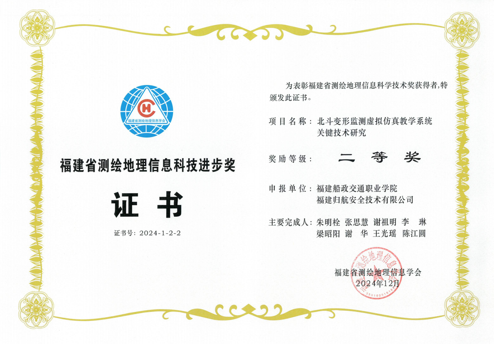 2024年福建省測繪地理信息技術(shù)學(xué)會科技進步獎