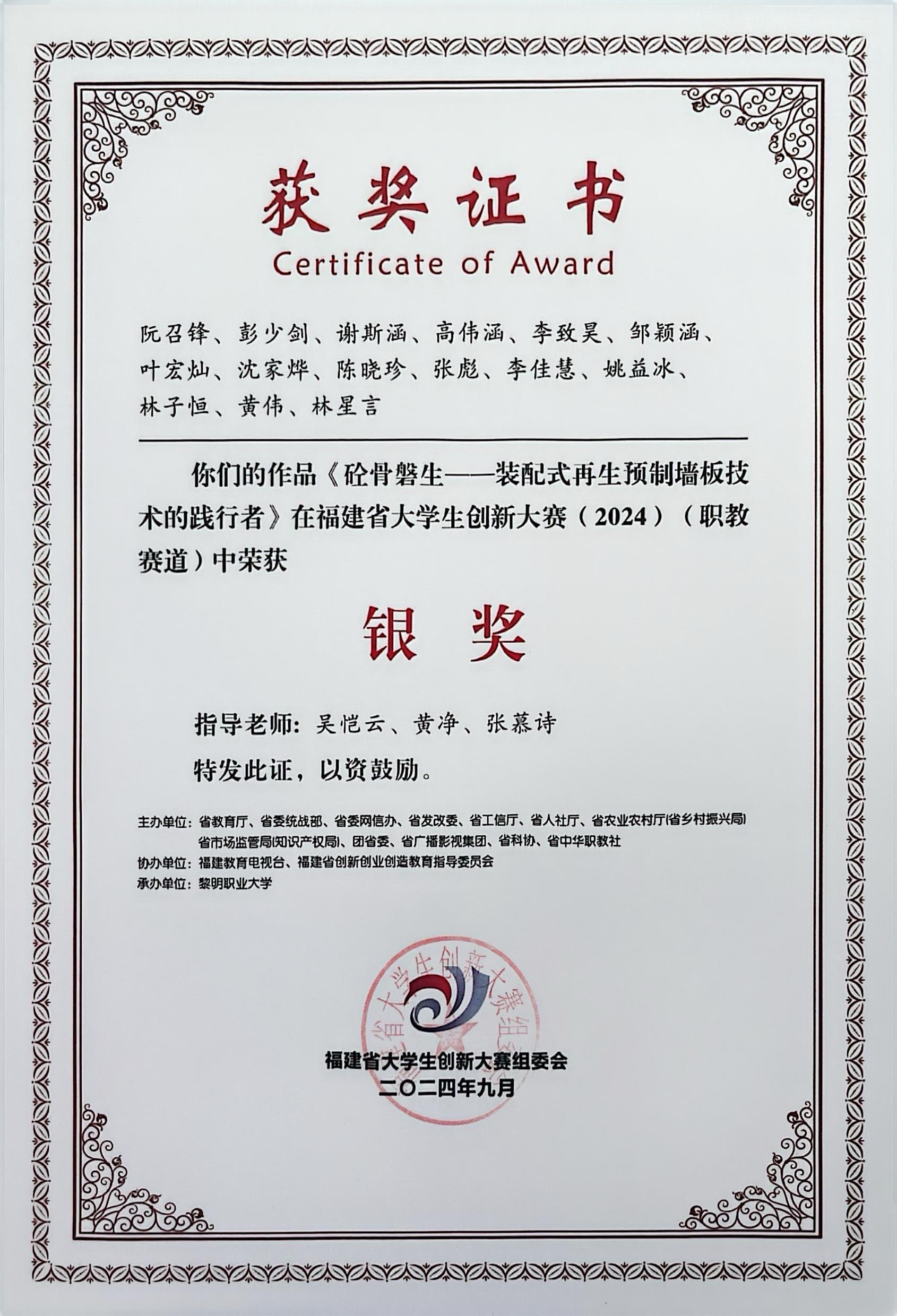 以賽促學(xué),成績斐然:依托經(jīng)驗豐富的指導(dǎo)教師團隊及BIM社團,學(xué)生在各級各類高水平賽事中屢獲佳績,近3年學(xué)生獲國家級獎項7項,省一等獎9項。2025年專業(yè)學(xué)生代表福建省出戰(zhàn)第三屆國賽“數(shù)字建造”賽項,斬獲全國優(yōu)勝獎,實現(xiàn)福建省在該賽項國賽中優(yōu)勝獎“零的突破”。