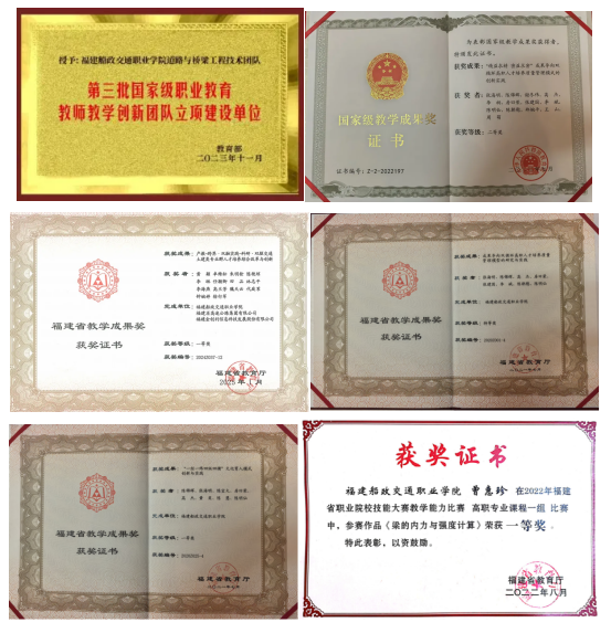 依托國-省-校級科研平臺體系,在教科研上取得豐碩成果。組建多專業(yè)、多技術(shù)集成的科研團隊,在交通基礎(chǔ)設(shè)施安全運維、智慧檢測監(jiān)測、無人機 應(yīng)用、綠色新材料等領(lǐng)域,開展橫縱向科研項目300余項,獲得專利80余件,出版專著2部,編制標(biāo)準(zhǔn)和指南15部,獲福建省科技進步獎2項。連續(xù)6年受福建高速集團委托,完成全省4.5萬公里全路段病害數(shù)據(jù)處理。受省住建廳委托成立福建省鄉(xiāng)村振興服務(wù)中心,開展鄉(xiāng)村工匠培訓(xùn)、古厝保護、農(nóng)村公路拓寬、安全治理等幫扶指導(dǎo)和公益性技術(shù)支援,打造服務(wù)鄉(xiāng)村振興示范樣板;將道橋預(yù)防性養(yǎng)護、智慧運維等科研成果融入專業(yè)教育,建成道路與橋梁工程技術(shù)專業(yè)省級專業(yè)教學(xué)資源庫、省級精品課程20門、出版教材20余部,其中國家規(guī)劃教材6部。堅持“以賽促學(xué)、以賽促教、以賽促改”指導(dǎo)學(xué)生參加各類競賽,獲得國家級獎項34項、省級獎項75項。深化“崗課賽證”融通,探索“崗課”銜接、“課賽”聯(lián)通、“課證”融合機制,實現(xiàn)“崗課賽證”融入專業(yè)人才培養(yǎng)全過程。