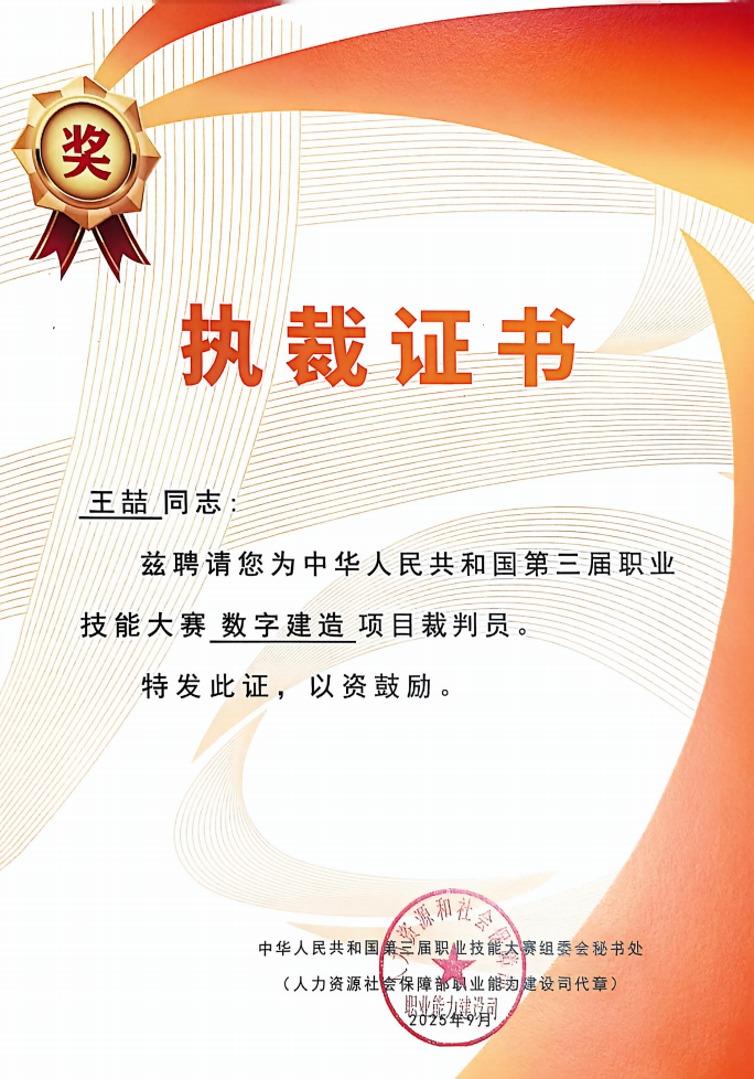 國家級認(rèn)可,世賽集訓(xùn)基地落戶:專業(yè)建設(shè)取得突破,2025年學(xué)院數(shù)字建造項目成功入選第48屆世界技能大賽中國集訓(xùn)基地,獲人力資源和社會保障部與世界技能大賽中國組委會正式公布。標(biāo)志著學(xué)院在建筑數(shù)字化、智能化、綠色化人才培養(yǎng)方面獲得國家級最高水平認(rèn)可,將承擔(dān)為國家培養(yǎng)頂尖選手、對接國際標(biāo)準(zhǔn)的重要使命。