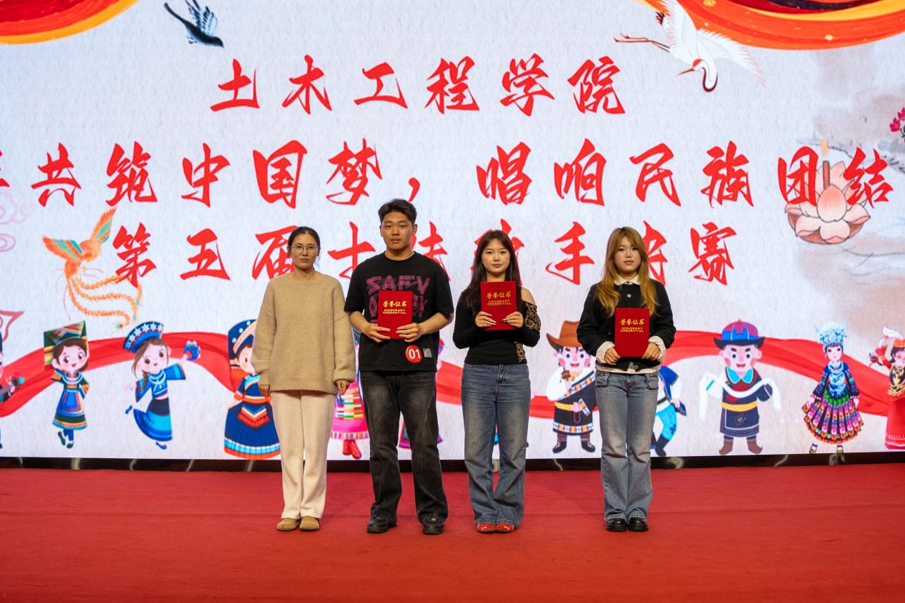 比賽在熱烈而溫馨的氛圍中圓滿落幕,全體參賽選手、指導(dǎo)老師及工作人員齊聚舞臺(tái),共同定格下這一美好而珍貴的瞬間。此次比賽不僅為學(xué)子搭建了藝術(shù)展示平臺(tái),更凝聚了民族團(tuán)結(jié)力量,讓民族同心筑夢(mèng)的理念深植青年心中。下一步,學(xué)院將繼續(xù)以校園文化活動(dòng)為載體,厚植民族情懷,引導(dǎo)青年為民族團(tuán)結(jié)和中國(guó)夢(mèng)貢獻(xiàn)青春力量。