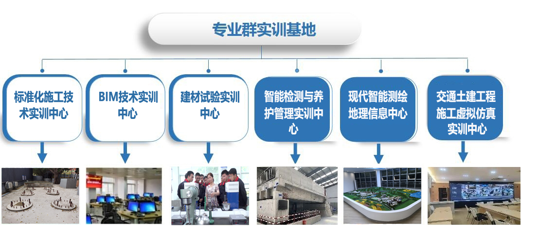 交通土建專業(yè)群實訓基地是“國家高等職業(yè)院校創(chuàng)新行動計劃校企共建生產性實訓基地”,2020年入選福建省省級職業(yè)院校高水平專業(yè)化產教融合實訓基地。與省內外近60多家知名企業(yè)合作共建覆蓋交通基礎設施設計、施工、管養(yǎng)等全領域的校內外實訓基地,充分滿足學生學員實習實訓需求。為國家“1+X”證書建筑信息模型(BIM)、無人機技術、無損檢測技術、裝配式技術,交通部施工現(xiàn)場專業(yè)人員培訓及考核基地。經過多年建設發(fā)展,校內現(xiàn)有各類實訓場館及科研場所建筑面積8000多平方米,室外實訓場地約30000平方米,包含土木工程數(shù)字化融創(chuàng)中心、現(xiàn)代智能測繪技術技能中心、智慧檢測實訓基地、交通土建標準化智慧實訓基地、施工工藝虛擬仿真實訓中心、產教融合實訓基地等18個校內實訓基地。主要實驗實訓臺套數(shù)近2200臺套(工位),設備總價值約3000萬元。實踐教學條件處于國內同類院校同類專業(yè)領先水平。