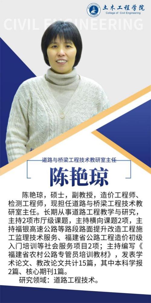 依托3個國家級平臺在教科研上取得豐碩成果,近年開展橫縱向科研項目約200項,獲得專利60余件,出版專著2部,編制標準和指南13部,獲福建省科技進步獎2項。連續(xù)5年受福建高速集團委托,完成全省3.4萬公里全路段病害數(shù)據(jù)處理;對省內近百條農村公路拓寬改造、安全治理等提供幫扶指導和公益性技術支援,打造服務鄉(xiāng)村振興示范樣板;將道橋預防性養(yǎng)護、智慧運維等科研成果融入專業(yè)教育,建成道路與橋梁工程技術專業(yè)省級專業(yè)教學資源庫1個、出版教材20部(國家級3部)。堅持“以賽促學、以賽促教、以賽促改”指導學生參加各類競賽,獲得國家級獎項29項、省級以上獎項58項;以4個1+X證書制度試點項目建設為契機,深化“崗課賽證”融通,探索“崗課”銜接、“課賽”聯(lián)通、“課證”融合機制,實現(xiàn)“崗課賽證”融入專業(yè)人才培養(yǎng)全過程,完成省級以上教改項目10余項。