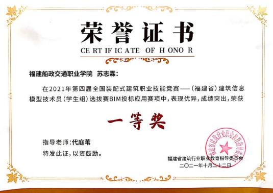 以賽促學,成績斐然:依托經(jīng)驗豐富的指導教師團隊及BIM社團,學生在各級各類高水平賽事中屢獲佳績,近3年學生獲國家級獎項7項,省一等獎9項。2025年專業(yè)學生代表福建省出戰(zhàn)第三屆國賽“數(shù)字建造”賽項,斬獲全國優(yōu)勝獎,實現(xiàn)福建省在該賽項國賽中優(yōu)勝獎“零的突破”。