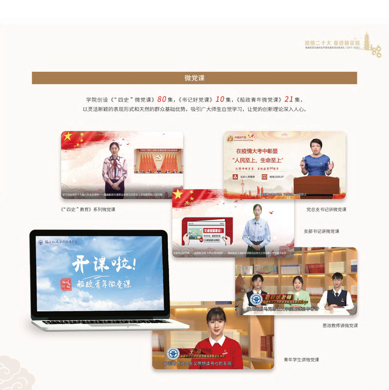 教育黨員有力 今年是黨的二十大召開之年,是學(xué)校深化綜合改革、加快“雙高”建設(shè)的關(guān)鍵年,是續(xù)寫過去5年工作、回首新時(shí)代10年變革的轉(zhuǎn)折年。站在新的歷史起點(diǎn)上,船政交通人將始終沿著習(xí)近平總書記親自為福建擘畫的最美山水圖、沿革船政先賢留下的文化瑰寶、延續(xù)一代代船政交通人接續(xù)奮斗的精神,以飽滿的精神、昂揚(yáng)的斗志、奮進(jìn)的狀態(tài),開啟建設(shè)中國特色高水平高職學(xué)校的新征程,以優(yōu)異成績慶祝黨的二十大勝利召開!