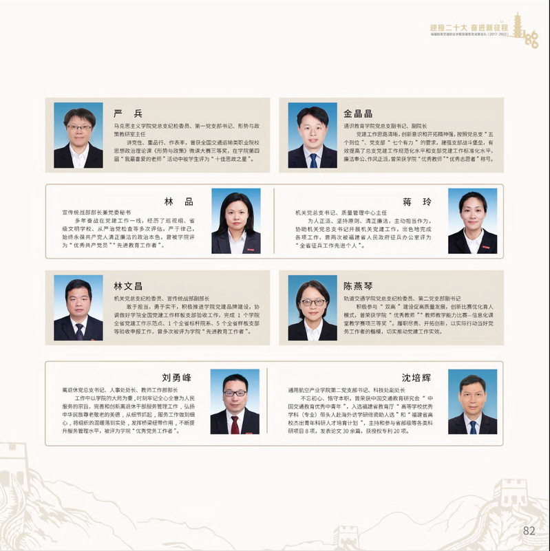 2022年是黨的二十大召開之年,是學校深化綜合改革、加快“雙高”建設(shè)的關(guān)鍵年,是續(xù)寫過去5年工作、回首新時代10年變革的轉(zhuǎn)折年。站在新的歷史起點上,船政交通人將始終沿著習近平總書記親自為福建擘畫的最美山水圖、沿革船政先賢留下的文化瑰寶、延續(xù)一代代船政交通人接續(xù)奮斗的精神,以飽滿的精神、昂揚的斗志、奮進的狀態(tài),開啟建設(shè)中國特色高水平高職學校的新征程,以優(yōu)異成績慶祝黨的二十大勝利召開!