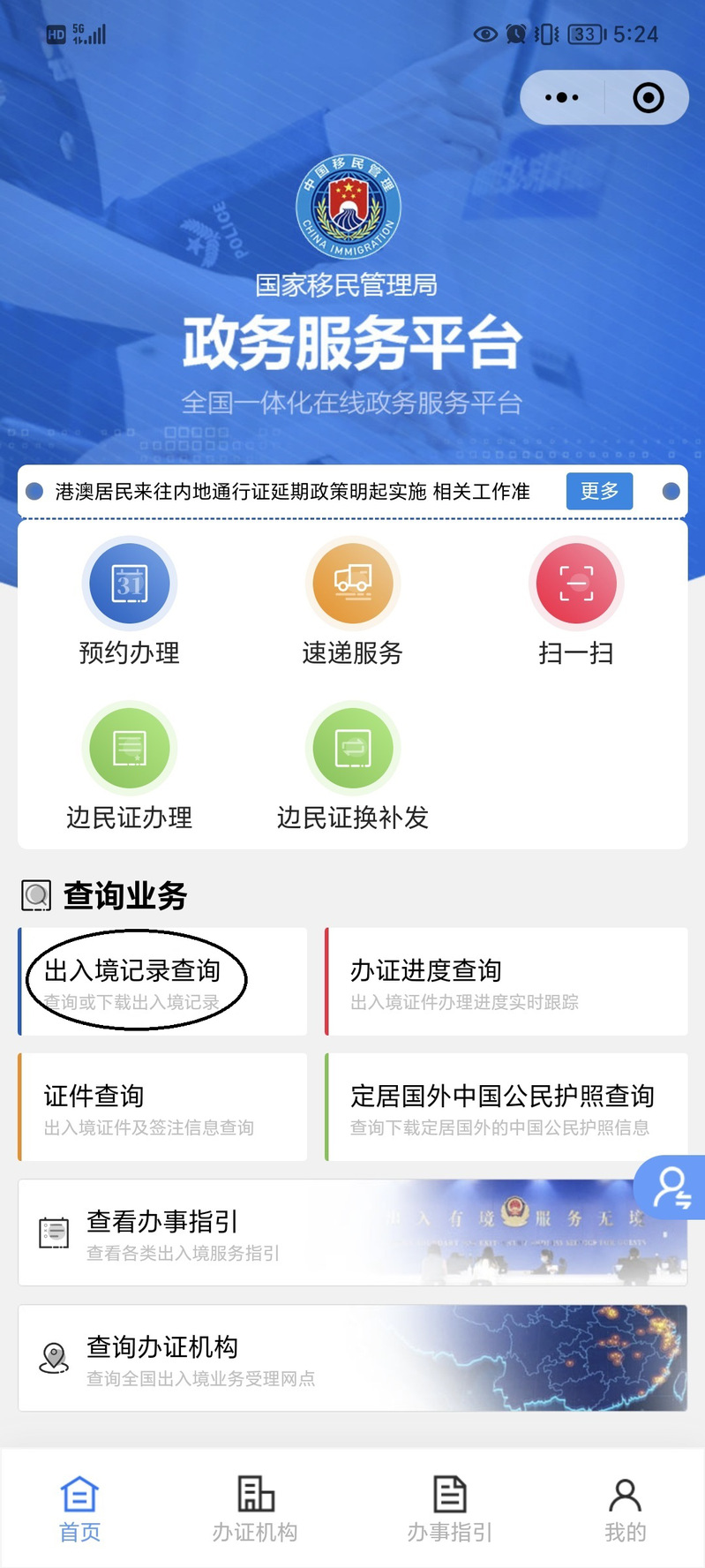 微信掃碼進(jìn)入“移民局”小程序。