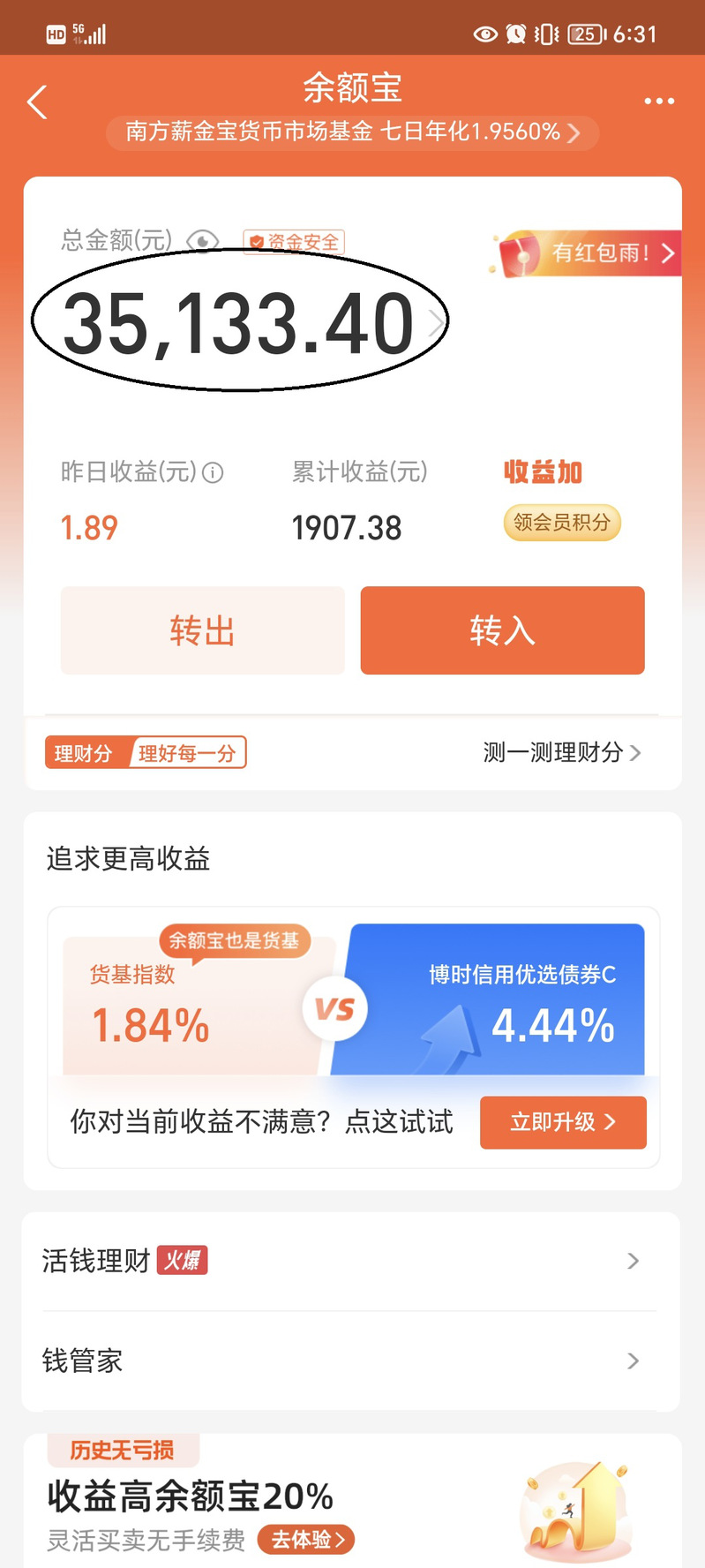 進(jìn)入余額寶頁面,點擊金額。