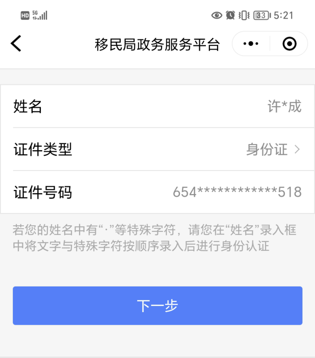 進(jìn)入實名認(rèn)證環(huán)節(jié),輸入本人姓名、身份證號,點擊“下一步”。