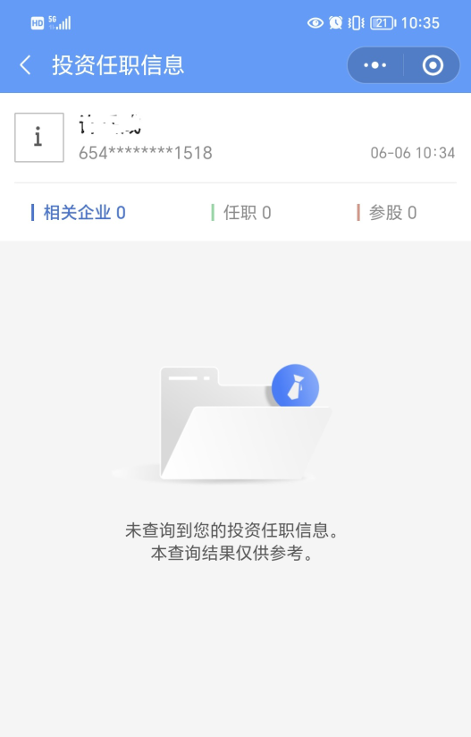 第三步 點擊“零錢通”,可進(jìn)入零錢通詳情頁。 第四步 點擊右上角“···”,選擇“基金詳情”進(jìn)入基金詳情頁。 第五步 點擊基金名稱,可查看基金代碼等信息。 04 投資型保險查詢 第一步 掃碼下載“金事通”APP。 第二步 進(jìn)入“金事通”APP后,點擊右下角“個人中心”。 第三步 注冊登錄“金事通”APP。 第四步 授權(quán)登錄后,可在首頁“投資型保險”模塊查詢本人持有投資型保險情況。 第五步 進(jìn)入投資型保險查詢界面,點擊右下角“查看表單”查看投資型保險表單詳情,表單詳情格式與“17.本人、配偶、共同生活的子女投資或者以其他方式持有投資型保險的情況”欄格式一致。 05 投資企業(yè)或擔(dān)任高級職務(wù)查詢 第一步 微信掃碼進(jìn)入“電子營業(yè)執(zhí)照”小程序。 第二步 進(jìn)入后彈出窗口選擇“管理我的執(zhí)照”欄目下的“其他應(yīng)用”。 第三步 進(jìn)入其他應(yīng)用頁面,選擇“投資任職情況查詢”,按照查詢須知,在早上6點到晚上8點時間段內(nèi)進(jìn)行查詢。 第四步 進(jìn)入實名認(rèn)證環(huán)節(jié),輸入本人姓名、身份證號,點擊確認(rèn)。 第五步 使用人臉識別功能驗證本人身份,按照軟件操作識別身份。 第六步 查看投資任職信息,如有登記信息,則會顯示相應(yīng)公司名稱,可點擊公司名稱查看相應(yīng)的公司信息。 注意: 配偶、子女及其配偶的從業(yè)、投資企業(yè)情況,可到任職或投資的企業(yè)查詢,或使用“企查查”、“天眼查”、“國家企業(yè)信用公示系統(tǒng)”(www.gsxt.gov.cn網(wǎng)站)、“國家企業(yè)信用公示系統(tǒng)”微信小程序等企業(yè)信息查詢APP輔助查詢。 法律服務(wù)機(jī)構(gòu)查詢 登錄“全國律師誠信信息公示平臺”(https://credit.acla.org.cn/),可查詢律師事務(wù)所和律師相關(guān)信息。 07 投資私募股權(quán)投資基金查詢 第一步 登錄“中國證券投資基金業(yè)協(xié)會”官網(wǎng),選擇頁面中的“私募基金業(yè)務(wù)”。(官網(wǎng):https://www.amac.org.cn) 第二步 進(jìn)入后下拉頁面,選擇“信息公示”,進(jìn)行相關(guān)查詢。 (轉(zhuǎn)載:智能組工)
