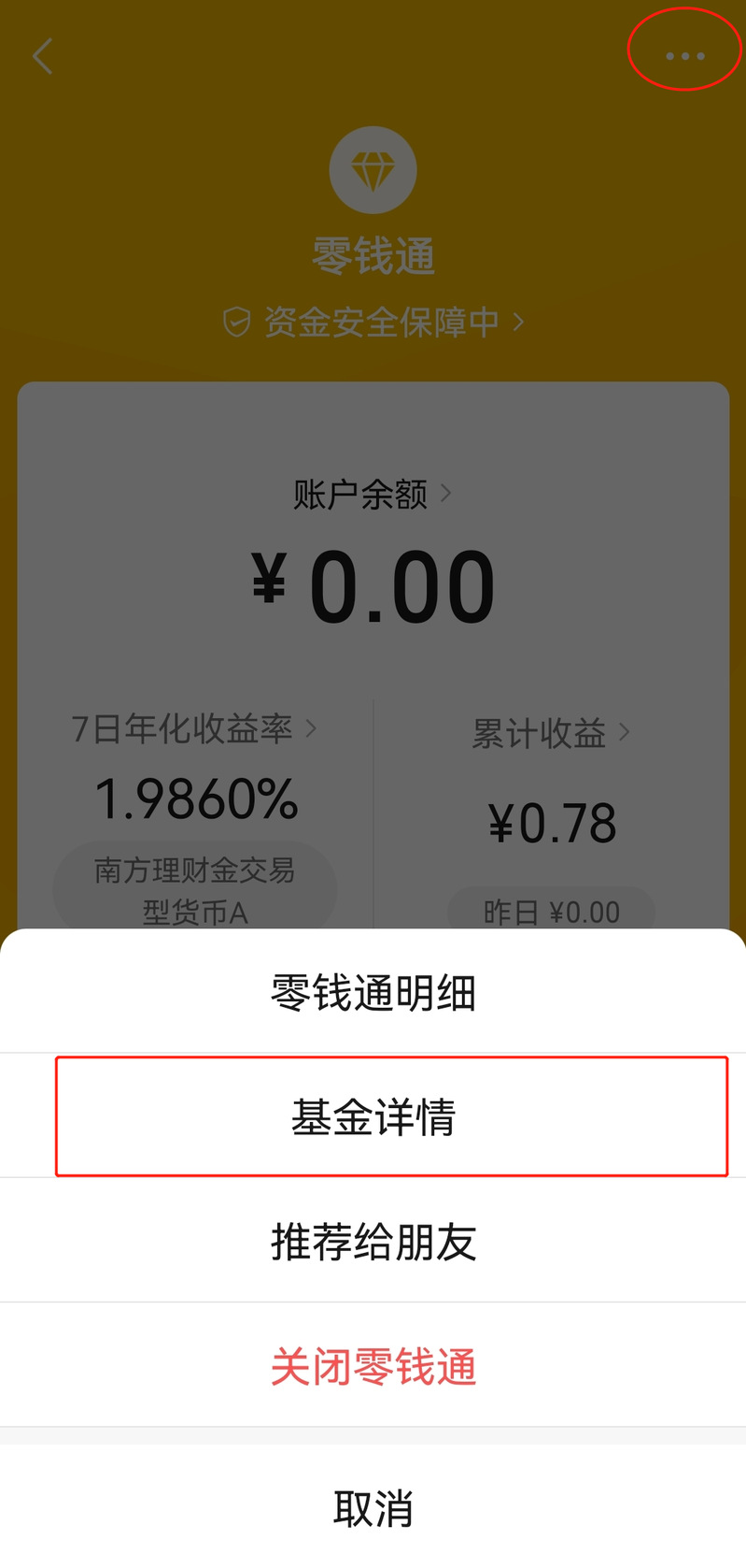 點擊“錢包”,可查看“零錢通”。其他基金和理財產(chǎn)品可點擊“理財通”查詢。