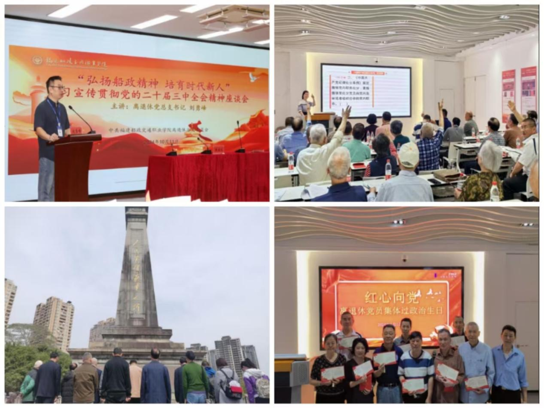 秉持“用心用情服務”理念,構建全方位服務關懷體系。一是建立困難黨員、獨居老人臺賬,推行“小老幫大老”互助模式,累計幫扶困難黨員50余人次,實現“關愛不斷線”。二是持續(xù)開展“敬老月”活動,舉辦健康講座、讀書茶話會等;常態(tài)化開展婦女節(jié)踏青、書畫攝影展等文體活動,參與老同志超800人次,營造尊老孝親氛圍。三是傳統(tǒng)佳節(jié)組織院領導、老黨員與學生共慶,覆蓋2000余人次,傳承中華美德,傳遞船政溫度。
