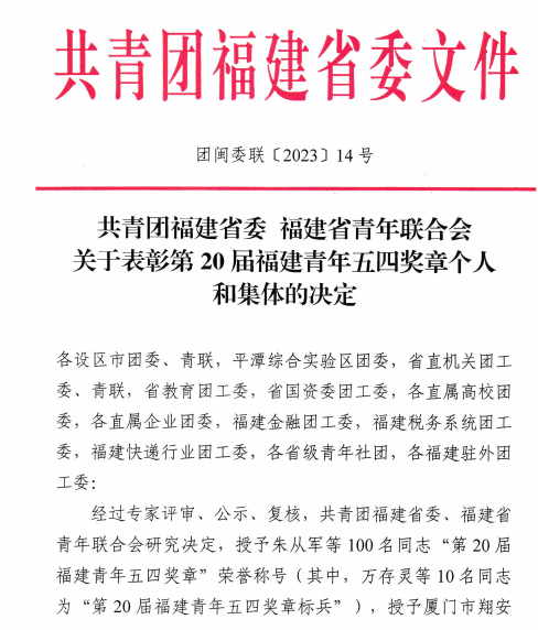 圖5 本人獲評(píng)省五四青年獎(jiǎng)?wù)?/strong>