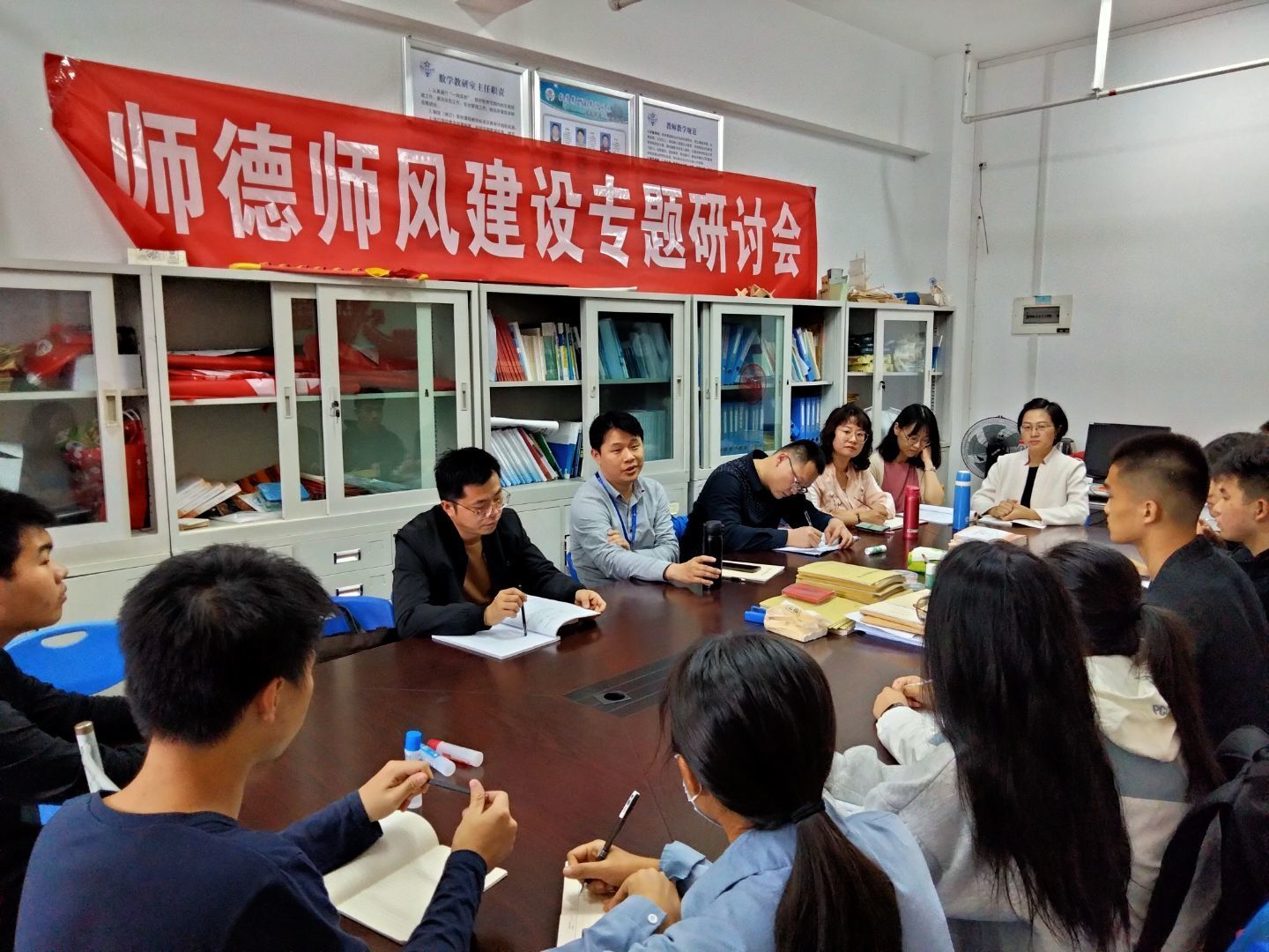 二是宣傳方面。印刷《新時代高校教師職業(yè)行為十項準(zhǔn)則》《福建船政交通職業(yè)學(xué)院教師職業(yè)行為負(fù)面清單及師德失范行為處理辦法》相關(guān)規(guī)定簡讀本,引導(dǎo)全體教職工要不斷提高師德素養(yǎng),嚴(yán)于律己,履行教師職責(zé)。同時,以“四有好老師、四個引路人、四個相統(tǒng)一”為素材,建設(shè)各教研室?guī)煹挛幕瘔?,營造弘揚高尚師德的良好氛圍。