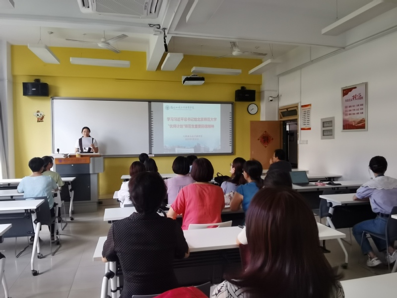 9月26日,經(jīng)濟(jì)與管理學(xué)院召開學(xué)習(xí)貫徹習(xí)近平總書記給“優(yōu)師計劃”師范生重要回信精神專題學(xué)習(xí)會。院領(lǐng)導(dǎo)、各教研室主任、各支部書記、副書記、全體輔導(dǎo)員、全體行政人員、實(shí)驗(yàn)員、新進(jìn)教師參加了此次專題學(xué)習(xí)。會議由黨總支書記俞素平主持。