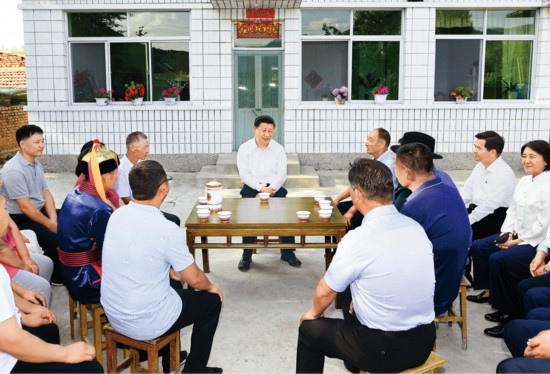 2019年7月15日至16日,中共中央總書記、國家主席、中央軍委主席習近平在內蒙古考察并指導開展“不忘初心、牢記使命”主題教育。這是15日下午,習近平在赤峰市喀喇沁旗河南街道馬鞍山村村民張國利家,同基層干部群眾代表座談交流。 新華社記者 謝環(huán)馳/攝