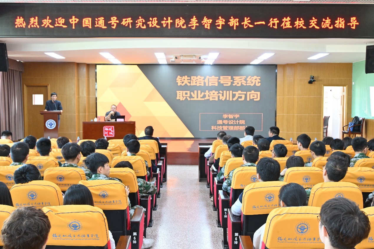 座談會(huì)后,李智宇部長(zhǎng)為軌道學(xué)院的全體師生作了題為《鐵路信號(hào)系統(tǒng)職業(yè)培訓(xùn)方向》的講座。講座中,李智宇部長(zhǎng)分析了國(guó)內(nèi)外軌道交通信號(hào)系統(tǒng)的發(fā)展方向,并針對(duì)信號(hào)系統(tǒng)職業(yè)培訓(xùn)特點(diǎn),在培養(yǎng)專業(yè)人才、教師服務(wù)企業(yè)的切入點(diǎn)等方面提供了良好建議,深入淺出、分析透徹,得到了現(xiàn)場(chǎng)師生的一致好評(píng)。講座現(xiàn)場(chǎng),軌道交通學(xué)院陳天炎院長(zhǎng)為李智宇部長(zhǎng)頒發(fā)了特聘專家聘書,聘請(qǐng)李智宇部長(zhǎng)作為軌道交通學(xué)院的特聘專家指導(dǎo)和參與學(xué)院的專業(yè)建設(shè),深化校企合作,提升人才培養(yǎng)質(zhì)量。