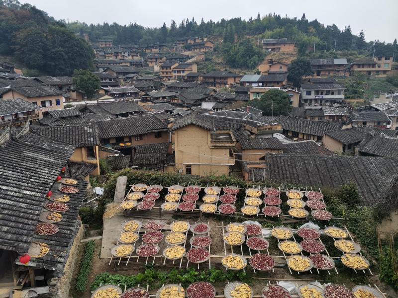 第二站是尤溪縣的桂峰村,這個古村猶如深山里的布達拉宮,看著層層疊疊的樣子頗有氣勢,另外它還是“宋四家”之一的蔡襄后人聚居的地方。正值村民們曬秋,我們一邊欣賞山間美景,一邊聽著這個古村落的故事。