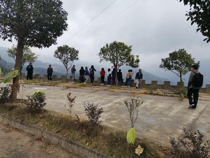 大家站在高處,俯瞰梯田全景,感受著中國重要農(nóng)業(yè)文化遺產(chǎn)的魅力。