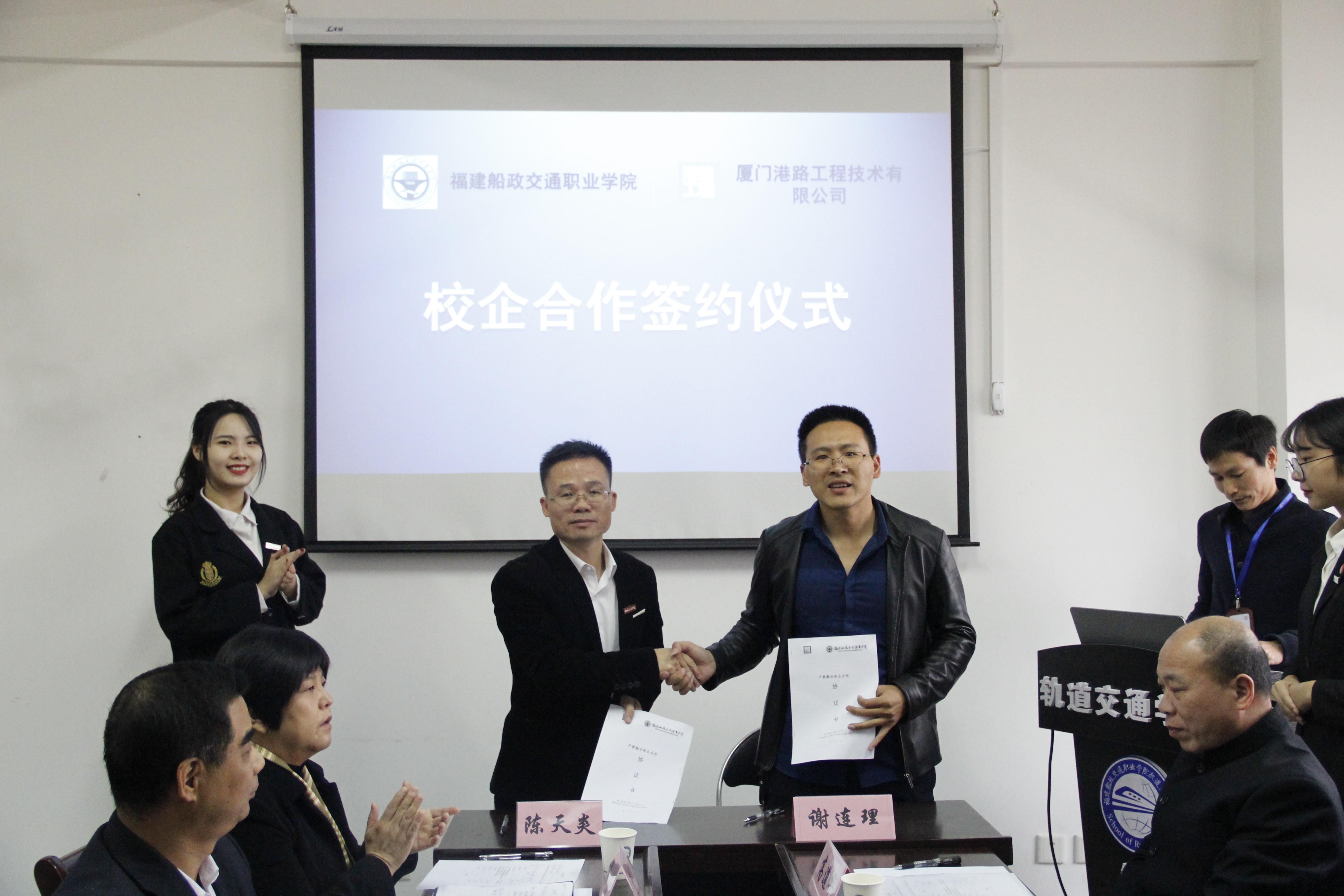 隨后舉行了校企合作簽約儀式,我院院長(zhǎng)陳天炎代表軌道交通學(xué)院同廣州南方測(cè)繪科技股份有限公司、中鐵二十四局集團(tuán)福建鐵路建設(shè)有限公司、廈門港路工程技術(shù)有限公司、福建省城鄉(xiāng)勘測(cè)設(shè)計(jì)院有限公司進(jìn)行合作簽約。