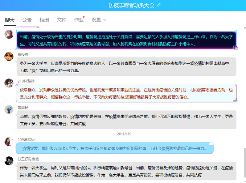 本次寒假疫情志愿者動員大會內(nèi)容豐富,以日常防控,外出防控以及防控“三不,三要”為主題,其中以外出防控為重點,在戶外參加志愿者活動時,如何保護好自己,能夠真正的投入到這場疫情防控阻擊戰(zhàn)當中貢獻自己的力量,而不是給疫情防控增加壓力。同學(xué)們也紛紛發(fā)表了自己的疑問與看法,遇到?jīng)_突如何化解,志愿者應(yīng)該擁有怎樣的素質(zhì)與能力,在這場疫情防控阻擊戰(zhàn)中我們能夠做什么事,扮演怎樣的角色。