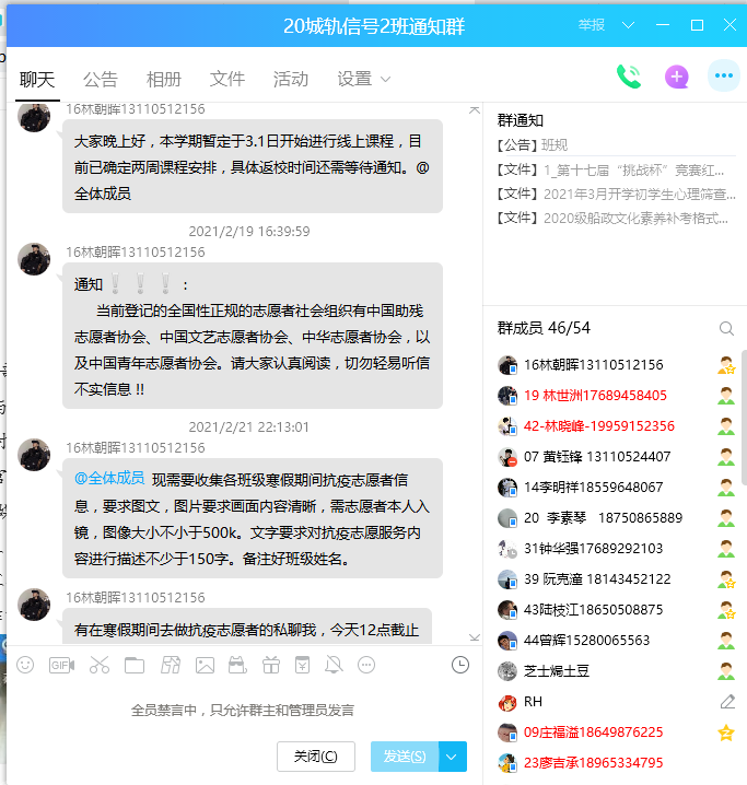 班主任充分利用網(wǎng)絡(luò)平臺,如班級的QQ群,welink等組織開展視頻班會,以防疫宣傳教育為主題,強調(diào)自我防控的重要性,分析了當(dāng)前疫情防控的形勢,傳達了學(xué)校加強疫情防控的部署和要求,強調(diào)了“停學(xué)不停課”的教學(xué)安排。同學(xué)們積極參與,踴躍發(fā)言,他們有些分享了自己在家學(xué)習(xí)生活的心得,表達了打贏疫情防控阻擊戰(zhàn)的堅強決心。激發(fā)了學(xué)生們的社會擔(dān)當(dāng),班會達到了較好的效果。