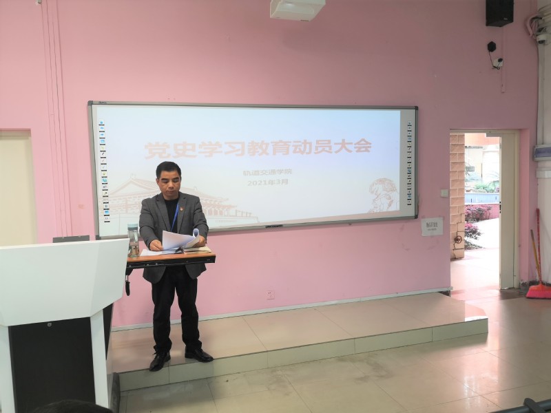 2021年3月24日,軌道交通學(xué)院在北區(qū)二號樓1-3多媒體教室召開黨史學(xué)習(xí)教育動員大會。軌道交通學(xué)院黨政領(lǐng)導(dǎo)班子、全院教職工參加會議,會議由孫基書記主持。