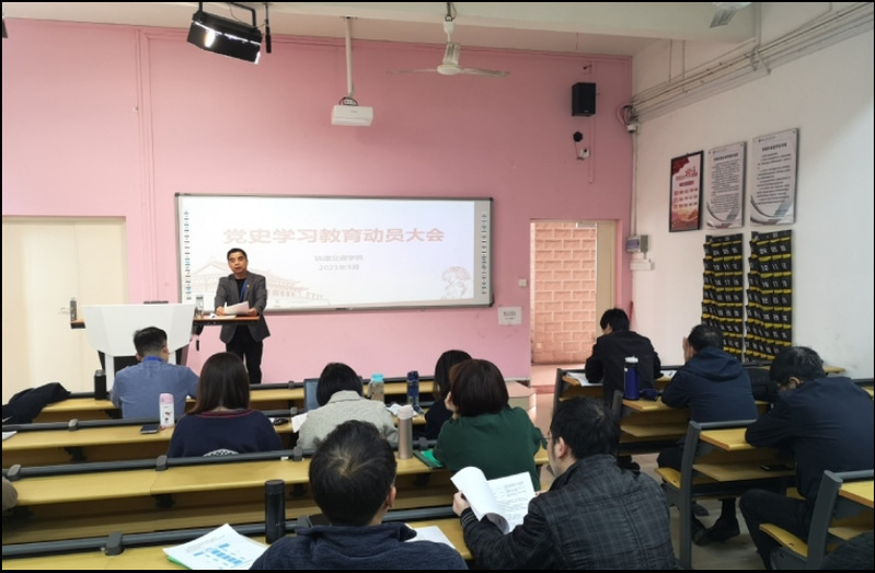 軌道交通學院黨總支堅持以習近平新時代中國特色社會主義思想為指導,加強理論學習,筑牢理論根基,感悟思想偉力,進一步引導全院教職工捍衛(wèi)“兩個確立”、增強“四個意識”、堅定“四個自信”、做到“兩個維護”。2021年3月24日,軌道交通學院迅速啟動黨史學習教育工作,召開黨史學習教育動員大會,根據(jù)全省教育系統(tǒng)黨史學習教育動員部署會視頻會議及校黨委黨史學習教育動員部署會議精神,要求把黨史學習作為一項重大的政治任務,建立黨總支理論學習中心組制度,制定學習計劃,做到學院一盤棋統(tǒng)籌、一體化推進。各支部實施黨史學習教育計劃,制定專題學習、專題培訓、著重在學習內容、學習步驟、學習方式上做深做實,突出學黨史、悟思想、辦實事、開新局,把黨史學習教育融入日常、抓在經常,確保學習教育各項任務落到實處。