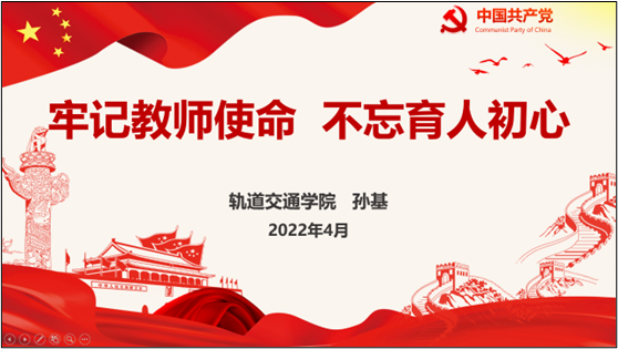 為進一步推動常態(tài)化落實落細師德師風建設,軌道交通學院各黨支部在四月份開展“強師德 鑄師魂”、“爭當'四有’好教師”、“汲取師德失范教訓強化師德師風建設”、“強師德 正師風 鑄師魂”等為主題的黨日活動。黨員們紛紛表示,通過師德師風黨日活動,牢固樹立了師德師風底線意識,切實增強了遵守教師職業(yè)行為十項準則的思想自覺和行動自覺,要更加以高標準的態(tài)度完成教師在日常教育教學活動中立德樹人、培養(yǎng)新時代社會主義建設者和接班人的教育教學目標,做黨和人民滿意的“四有”好老師!