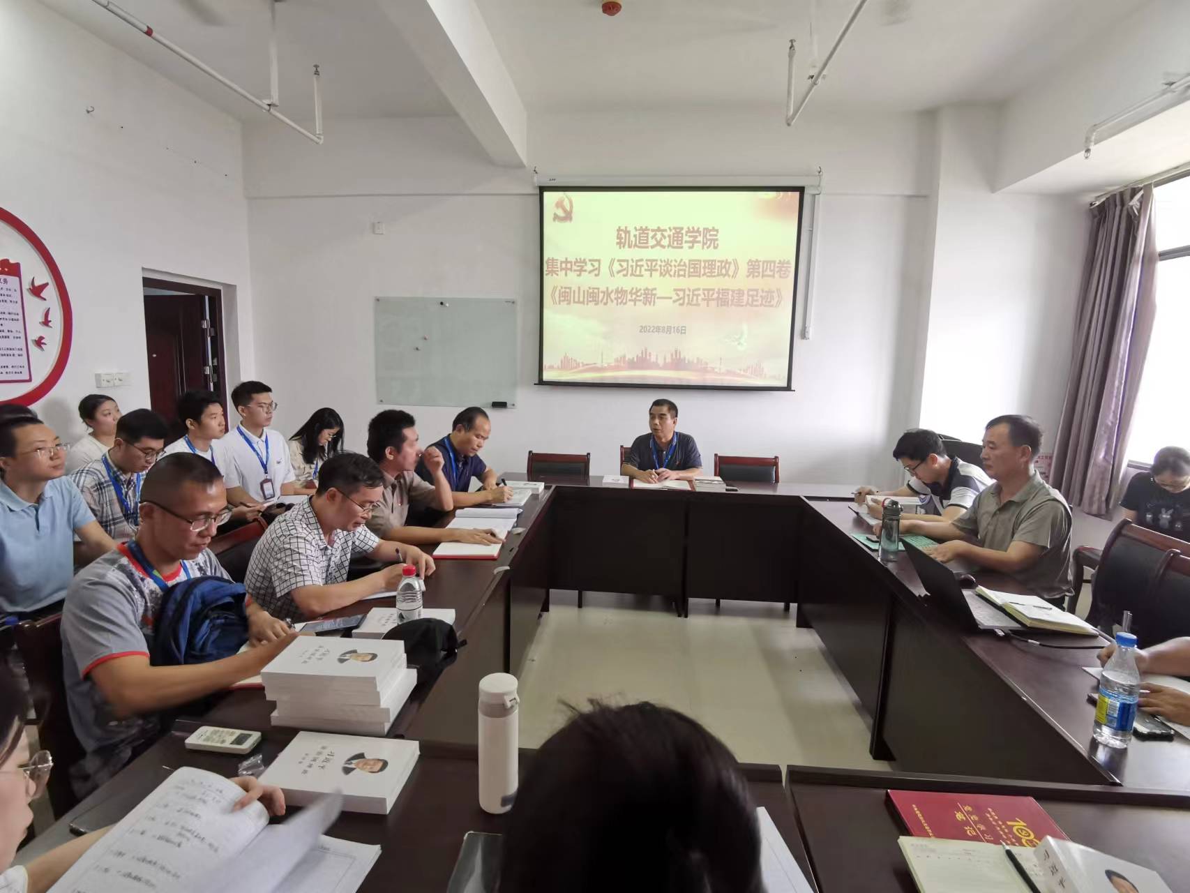 2022年8月16日上午,軌道交通學(xué)院在第一會議室舉行專題學(xué)習(xí)會,采取自學(xué)、研討、觀看視頻等相結(jié)合的方式集中學(xué)習(xí)《習(xí)近平談治國理政》第四卷和《閩山閩水物華新——習(xí)近平福建足跡》。軌道交通學(xué)院全院教職工參加學(xué)習(xí)會,會議由學(xué)院黨總支書記孫基主持。