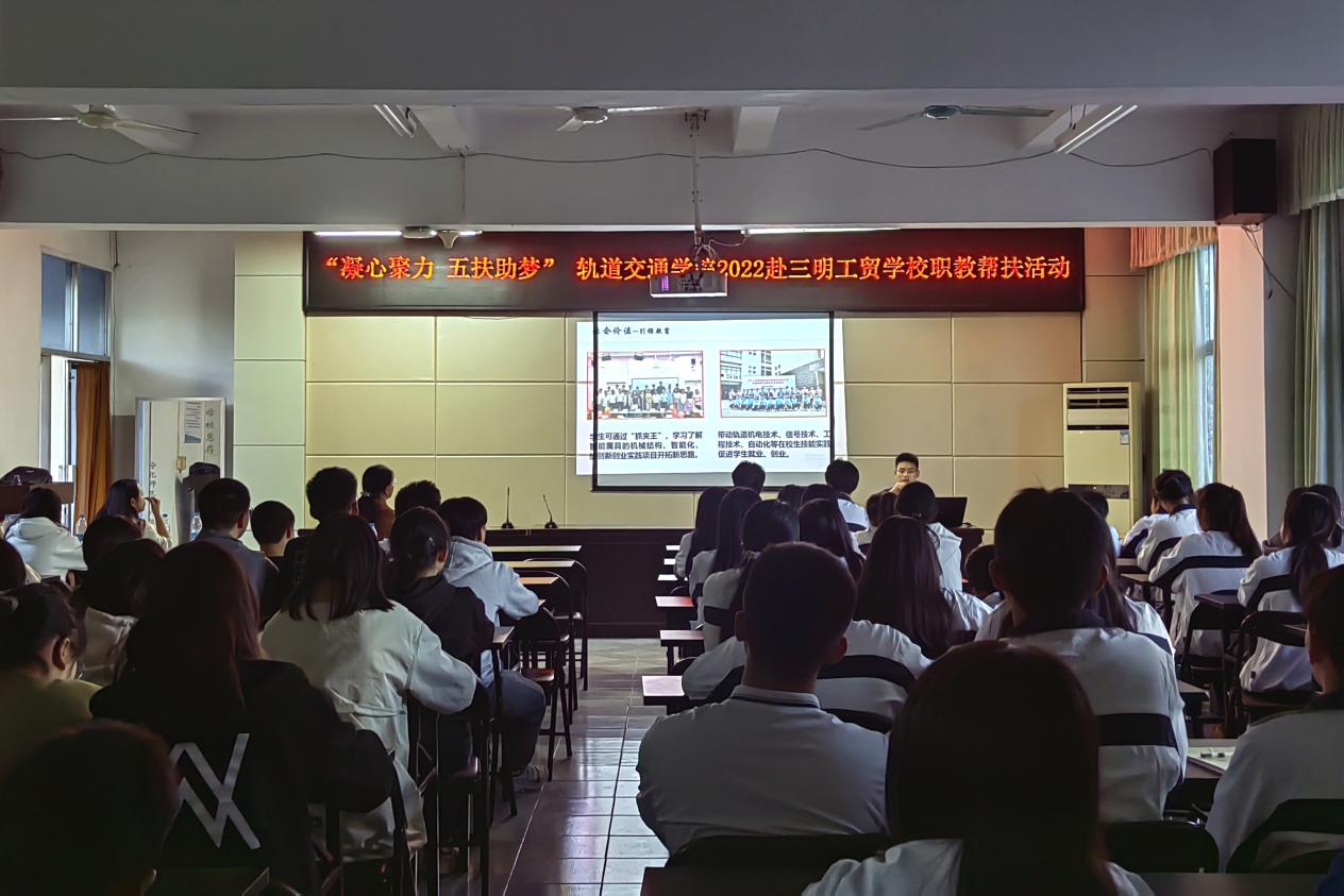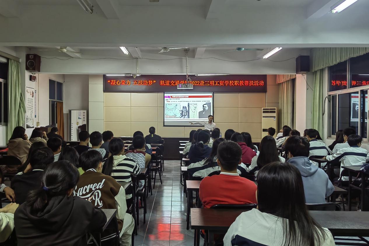 2022年10月20日,在黨的二十大勝利召開之際,福建船政交通職業(yè)學(xué)院軌道交通學(xué)院陳天炎院長率教師、學(xué)生代表一行,赴福建省三明工貿(mào)學(xué)校開展了多場別開生面的職教幫扶活動。開展職教幫扶活動不僅是“雙高”建設(shè)的重點任務(wù),也是進(jìn)一步加深中、高職院校交流合作,發(fā)揮雙方院校在辦學(xué)理念和專業(yè)特色上的優(yōu)勢,培養(yǎng)高素質(zhì)技術(shù)技能人才的重要舉措。