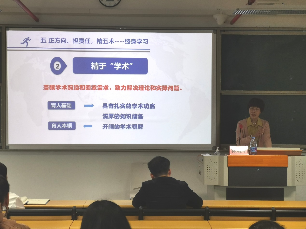 林娟玲校長從師德及內(nèi)涵、黨和國家對師德的重視為我院教師介紹了師德師風(fēng)建設(shè)的重要性,將師德師風(fēng)的內(nèi)涵概括為“師愛為魂,學(xué)高為師,身正為范,理念為先”。并指出當(dāng)前高校教師隊伍仍存在個別教師思想政治意識淡薄、師德失范、教書育人能力亟待提升,以及教師人事配套改革需要深化等問題。最后從新時代所需要的師德、正方向擔(dān)責(zé)任強五術(shù)兩個角度提出師德師風(fēng)的建設(shè)方向。