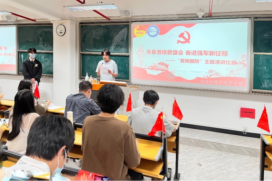 為推動(dòng)國(guó)防教育深入普及,激發(fā)我院學(xué)子延續(xù)紅色基因、熱愛(ài)人民軍隊(duì)、矢志強(qiáng)國(guó)強(qiáng)軍的政治熱情,軌道交通學(xué)院于11月29日在藝新樓607教室舉辦“青春激揚(yáng)贊盛會(huì),奮進(jìn)強(qiáng)軍新征程”愛(ài)我國(guó)防主題演講比賽活動(dòng)。此次活動(dòng)邀請(qǐng)了軌道交通學(xué)院任香螢、鄭華輝兩位輔導(dǎo)員以及軌道交通學(xué)院兩委干部擔(dān)任比賽評(píng)委。