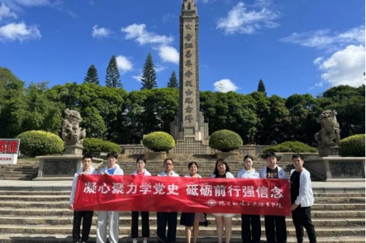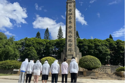 2022年8月17日“紅心軌道實踐團”來到了晉江市革命烈士陵園,園內(nèi)建有紀念碑、英烈堂、紀念館等主題設施, 該館分為民主革命時期和社會主義時期兩大部分,共收錄281位烈士、393張照片,以有詳有略、形式多樣的方式再現(xiàn)為晉江的解放、建設與發(fā)展拋頭顱、灑熱血的革命志士的奮斗足跡?!凹t心軌道實踐團”緬懷著對革命烈士的敬仰,在紀念碑前進行了莊重默哀,以表敬意。