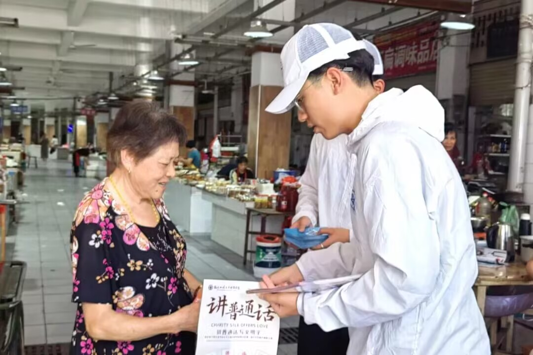 “民族團(tuán)結(jié)一家親”青軌社會實踐隊為推動國家通用語言文字使用,鑄牢中華民族共同體意識,也借此實踐機(jī)會向青峰村的當(dāng)?shù)卮迕裢茝V普通話,對于加強(qiáng)各民族交往交流交融、鑄牢中華民族共同體意識有著深遠(yuǎn)的意義。