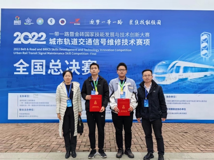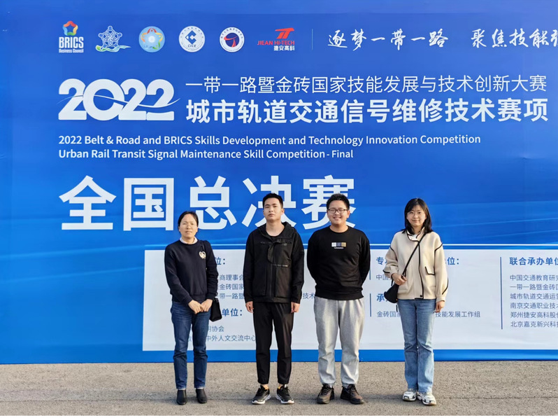 2023年4月21日-25日,2022-2023“一帶一路”暨金磚國家技能發(fā)展與技術(shù)創(chuàng)新大賽城市軌道交通信號維修技術(shù)賽項全國總決賽在南京交通職業(yè)技術(shù)學院展開激烈角逐。軌道交通學院派出陳偉、林達銀兩位同學代表學校參賽并獲得全國三等獎的好成績。