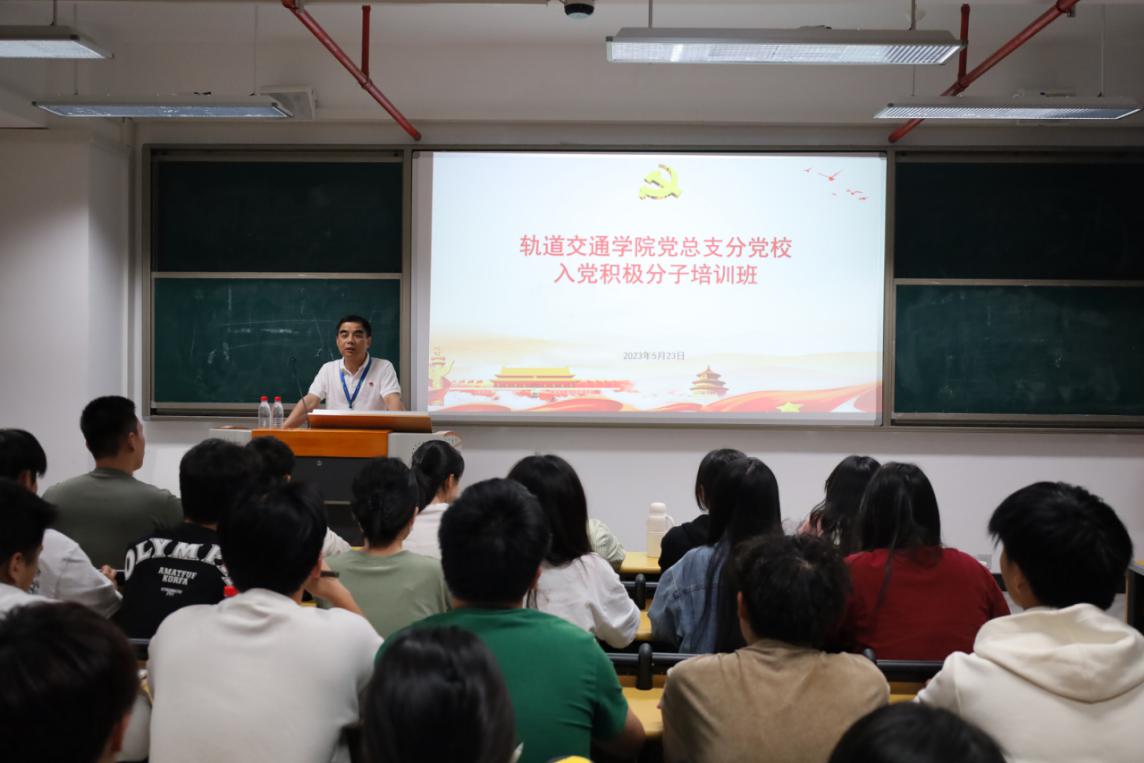 為扎實(shí)做好黨員發(fā)展工作,上好入黨“第一課”,切實(shí)把好黨員隊(duì)伍的“入口關(guān)”和“質(zhì)量關(guān)”,軌道交通學(xué)院黨總支分黨校舉辦2023年第三期(總第11期)入黨積極分子培訓(xùn)班。5月23日晚,軌道交通學(xué)院黨總支書(shū)記孫基以“與黨初相識(shí),淺顯入深處”為主題為參加本次培訓(xùn)的八十余名入黨積極分子進(jìn)行了入黨啟蒙教育。