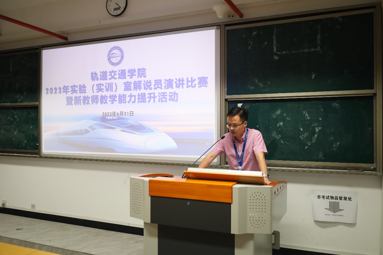 陳天炎院長在致辭中強(qiáng)調(diào),學(xué)院實(shí)驗(yàn)(訓(xùn))室是學(xué)校實(shí)驗(yàn)實(shí)訓(xùn)教學(xué)的重要載體,是對(duì)外展示學(xué)院辦學(xué)和專業(yè)建設(shè)成果及風(fēng)采的窗口,希望通過比賽,加強(qiáng)教師們之間的學(xué)習(xí)和交流,掌握軌道專業(yè)群實(shí)驗(yàn)(訓(xùn))室的功能,提高教師的實(shí)踐教學(xué)質(zhì)量,提升學(xué)院的知名度和影響力,為全力培養(yǎng)軌道交通行業(yè)高素質(zhì)技術(shù)技能人才提供有力保障。