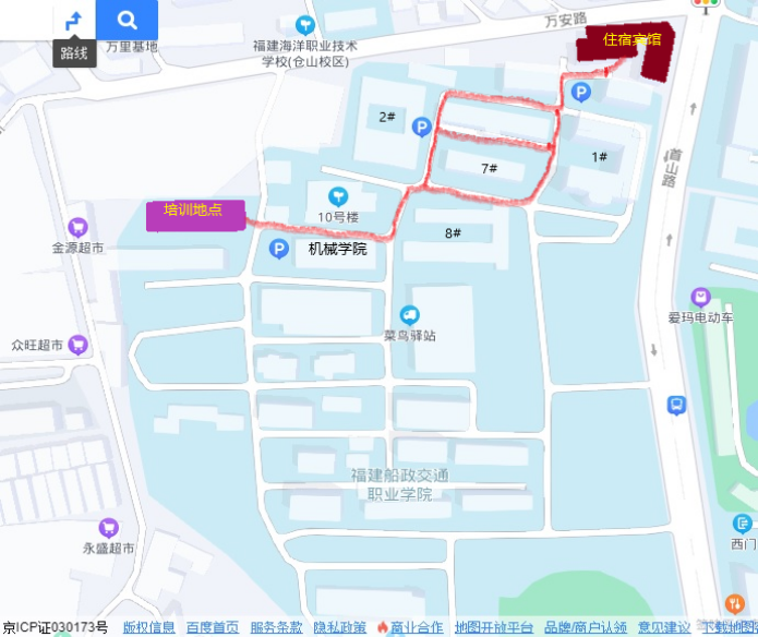 2.福州南站—福建船政交通職業(yè)學(xué)院校內(nèi)酒店:福州南站乘167路48分鐘|10.9公里|步行470米即到福建船政交通職業(yè)學(xué)院,或乘出租車直達(dá),約24元。