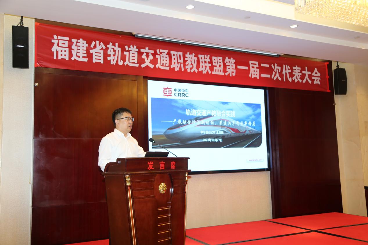 本次大會(huì)由福建省軌道交通職業(yè)教育聯(lián)盟、福建船政交通職業(yè)學(xué)院主辦,泉州中車唐車軌道車輛有限公司協(xié)辦。會(huì)議開始,中車唐山機(jī)車車輛有限公司紀(jì)委書記周新遠(yuǎn)致辭,表示中車唐山機(jī)車車輛有限公司將繼續(xù)從發(fā)揮產(chǎn)業(yè)工人隊(duì)伍優(yōu)勢(shì),發(fā)揮數(shù)字化、創(chuàng)新轉(zhuǎn)型優(yōu)勢(shì),發(fā)揮創(chuàng)新平臺(tái)優(yōu)勢(shì),發(fā)揮產(chǎn)業(yè)鏈鏈長(zhǎng)優(yōu)勢(shì)四方面,推動(dòng)職業(yè)教育與軌道交通裝備產(chǎn)業(yè)高度匹配、高效互動(dòng),共促福建省軌道交通事業(yè)的創(chuàng)新發(fā)展。
