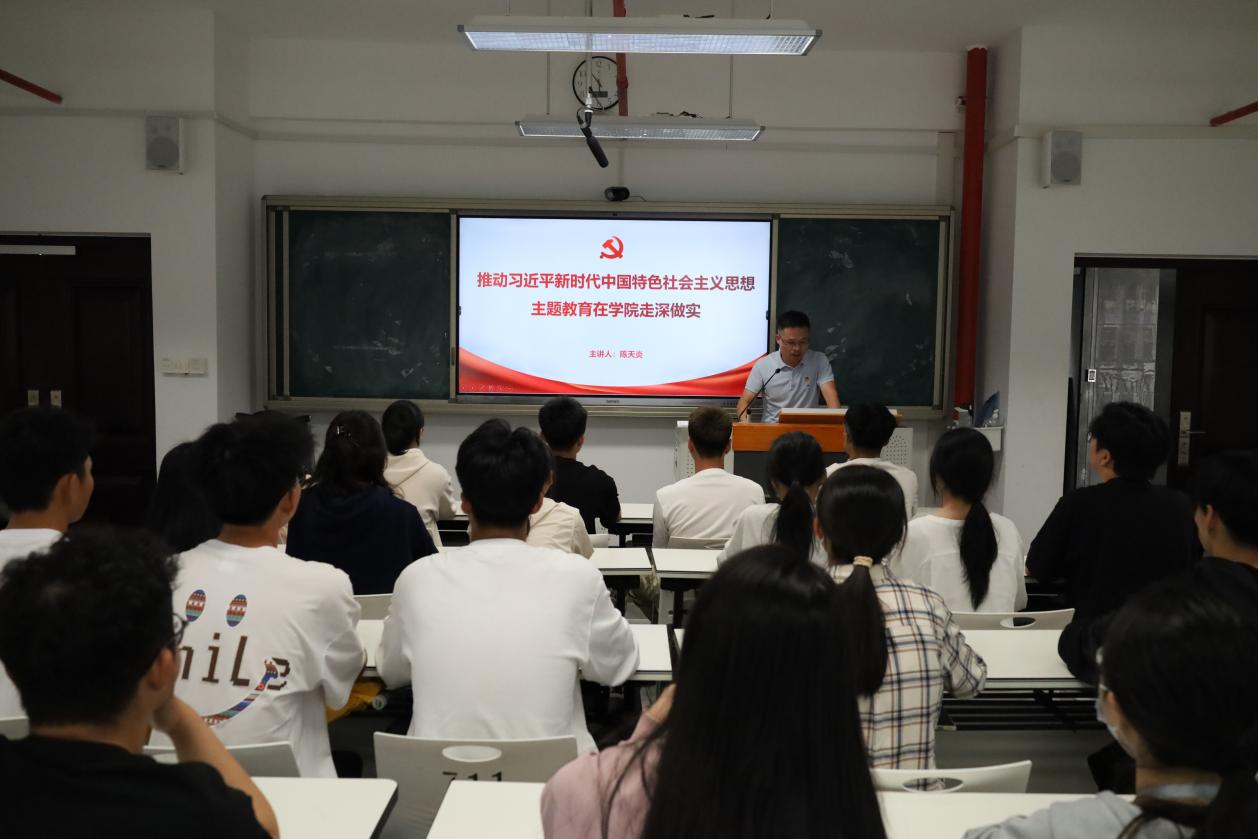 陳天炎院長闡述了本次主題教育的總要求和根本任務(wù),以及學(xué)院主題教育的開展情況和成效。他指出,入黨積極分子和發(fā)展對象作為同學(xué)們當(dāng)中表現(xiàn)優(yōu)秀的青年學(xué)子,應(yīng)當(dāng)以本次主題教育為契機,圍繞“學(xué)思想、強黨性、重實踐、建新功”的總要求,讀原著、學(xué)原文、悟原理,全面系統(tǒng)深入學(xué)習(xí)貫徹習(xí)近平新時代中國特色社會主義思想,領(lǐng)會習(xí)近平新時代中國特色社會主義思想的科學(xué)體系、精髓要義、實踐要求,并將其融入到以后的學(xué)習(xí)和工作中去。